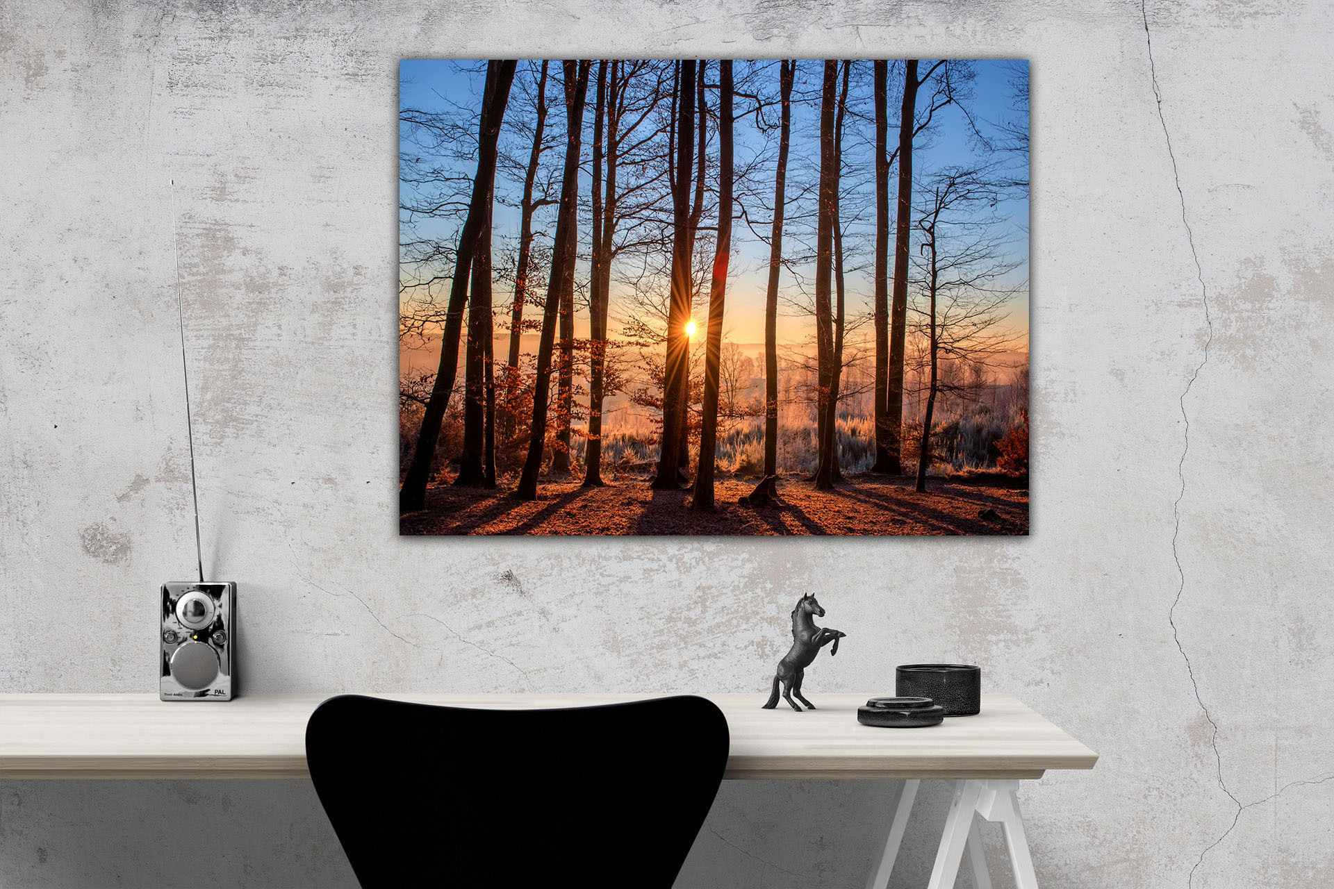 Gönnen Sie Ihrem Geist eine Pause und genießen Sie den entspannenden Anblick des ruhigen Waldes. Die gestochen scharfe Fotografie auf Leinwand wertet Ihr Zuhause auf und verleiht dem Raum eine individuelle Note. Egal ob Wohnzimmer, Schlafzimmer oder Flur: Dieser romantische Sonnenaufgang macht überall eine gute Figur.