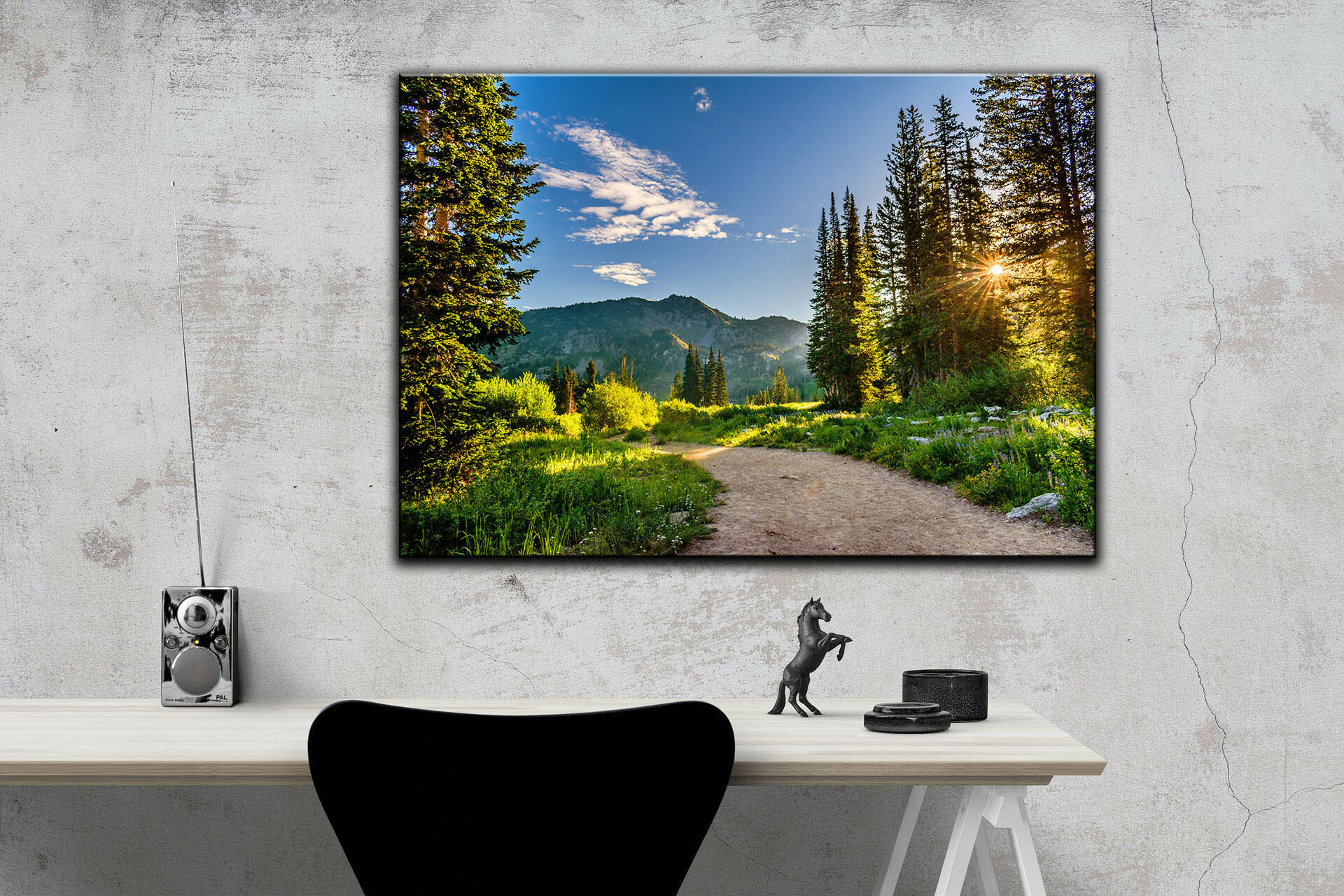 Produktinformationen "Leinwandbild Wandbild Berge Baume Sonnenaufgang Landschaft"