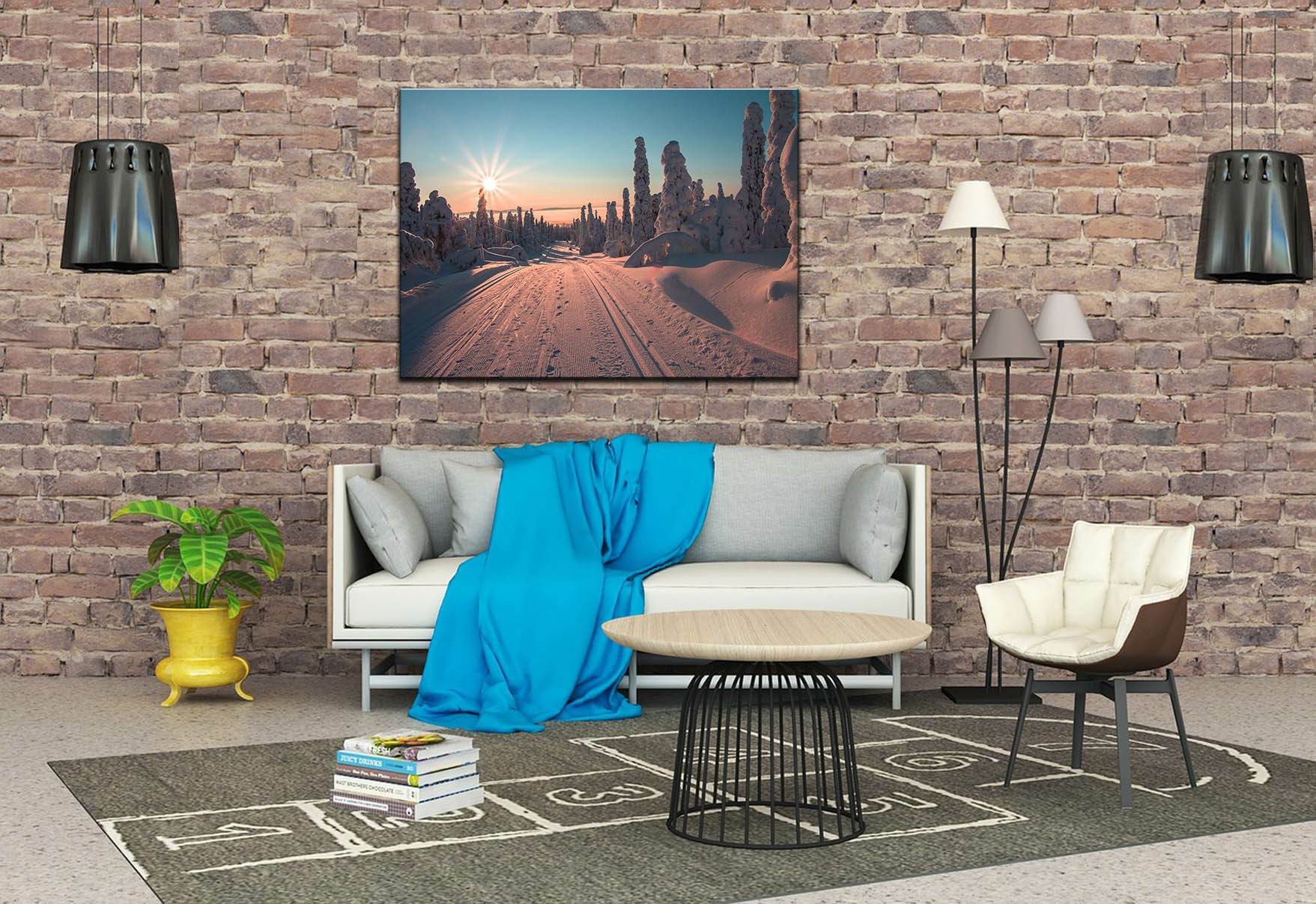 Weiterführende Links zu "Leinwandbild Wandbild Winter Schnee Sonnenuntergang"