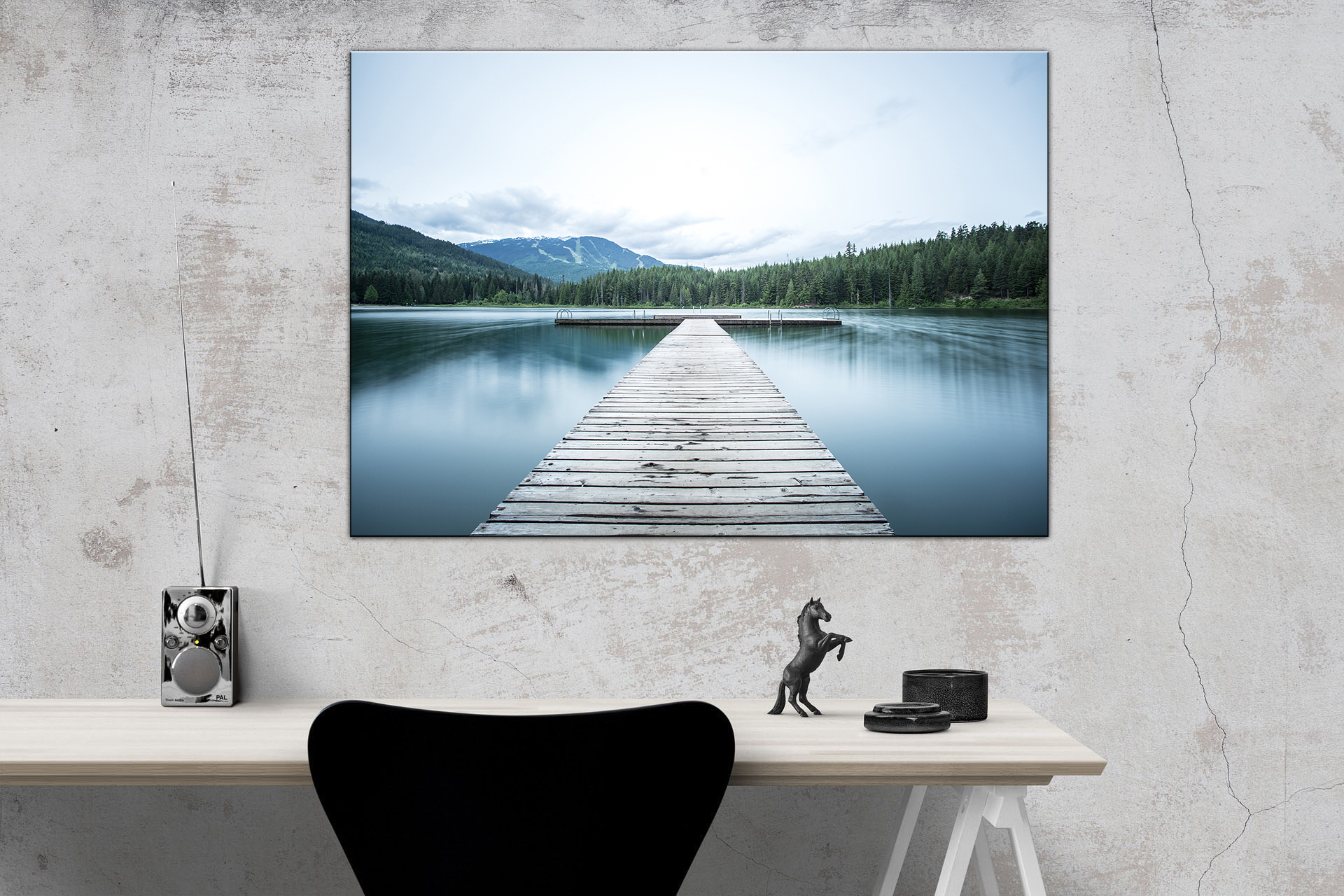 Produktinformationen "Leinwandbild Wandbild Berge See Steg Natur"