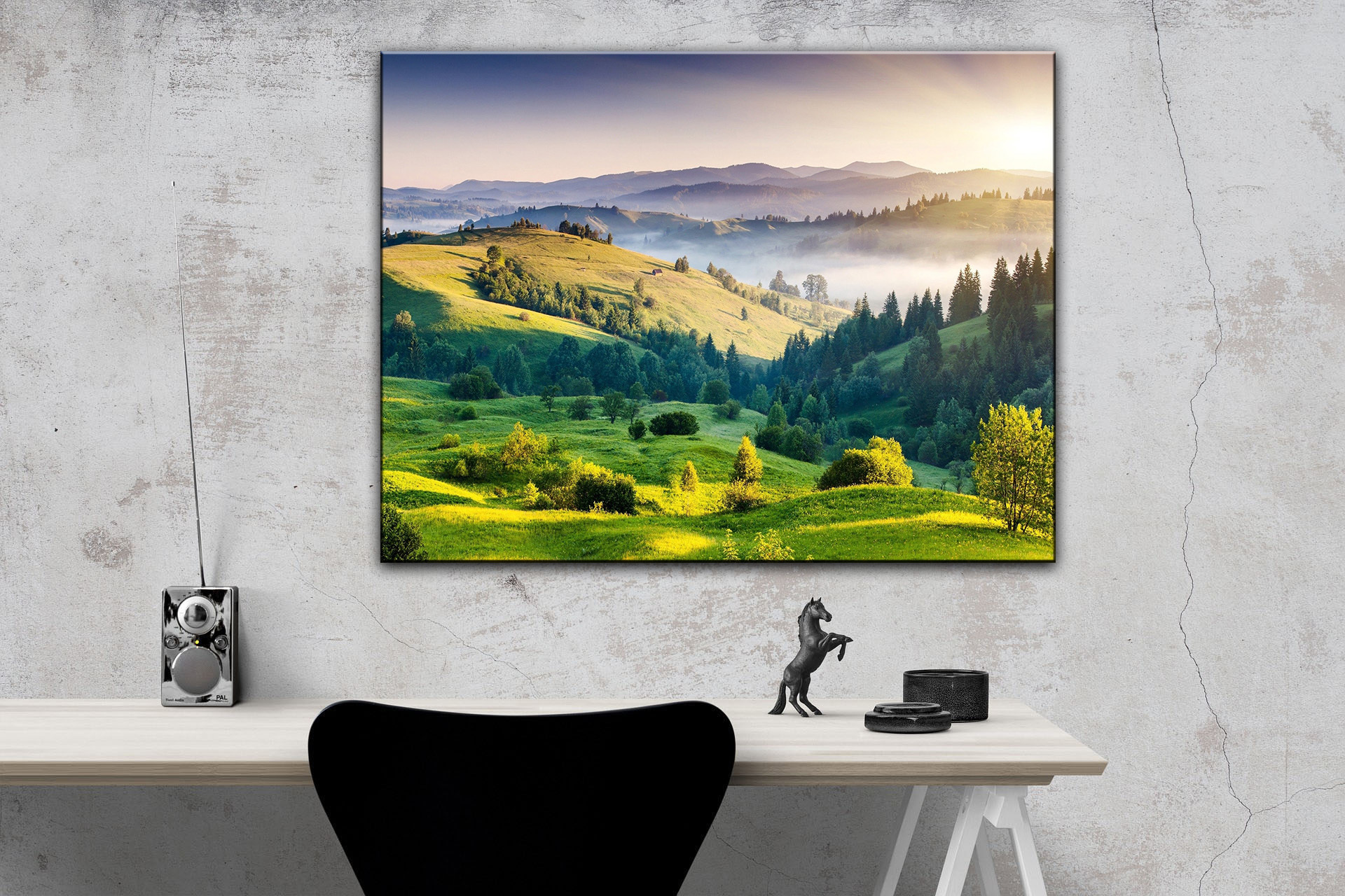 Bringen Sie Ruhe in Ihre vier Wände mit diesem hochwertigen Leinwandbild mit gestochen scharfem Fotodruck. Die natürlichen Farben passen sich ideal Ihrer Einrichtung an und erschaffen ein wohnliches Ambiente. Egal ob im Schlafzimmer, über dem Esstisch oder am Arbeitsplatz: Landschaftsbilder wie dieses sorgen für eine entspannte Stimmung und laden zum Träumen ein.